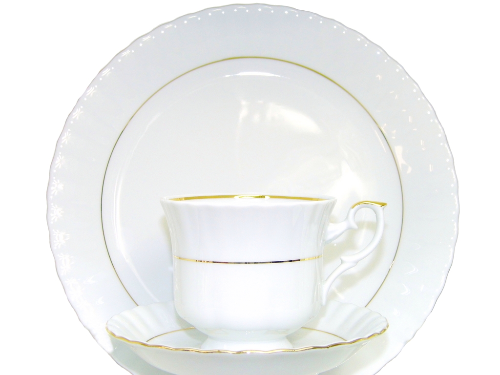 Dekoracja wykonana ręcznie z użyciem złota, serwis przeznaczony do mycia ręcznego.