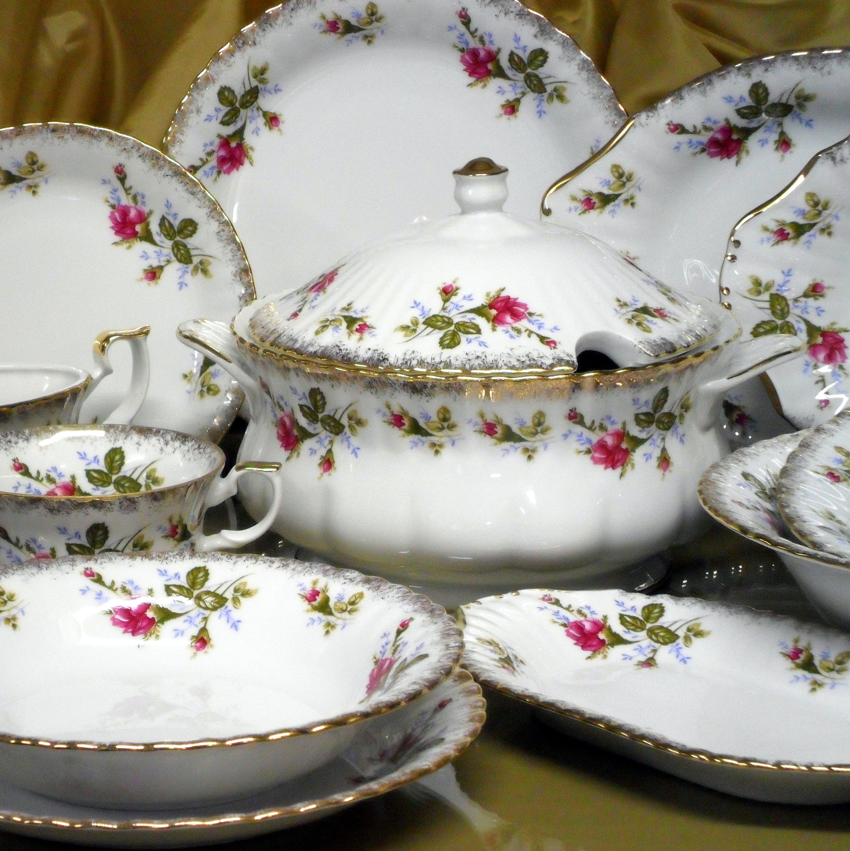 Dekoracja wykonana ręcznie z użyciem kalkomanii naszkliwnej oraz złota, serwis przeznaczony do mycia ręcznego.