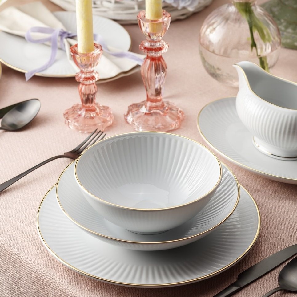 Dekoracja wykonana ręcznie z użyciem złota, serwis przeznaczony do mycia ręcznego.