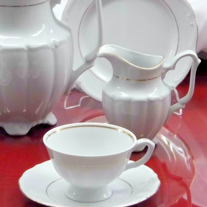 Dekoracja wykonana ręcznie z użyciem złota, serwis przeznaczony do mycia ręcznego.