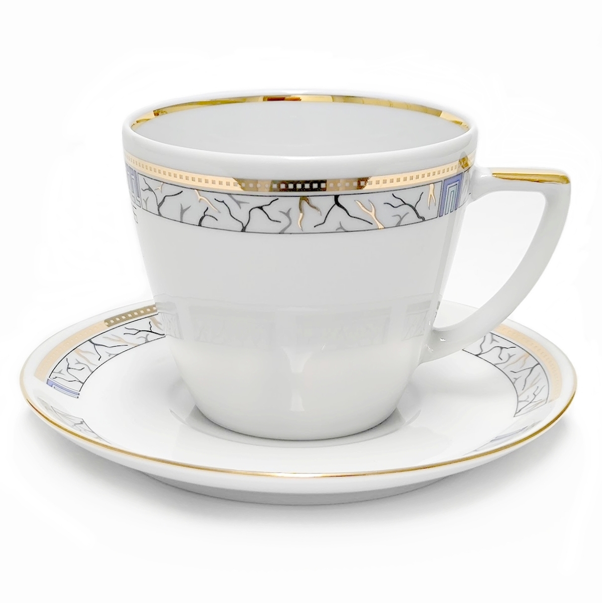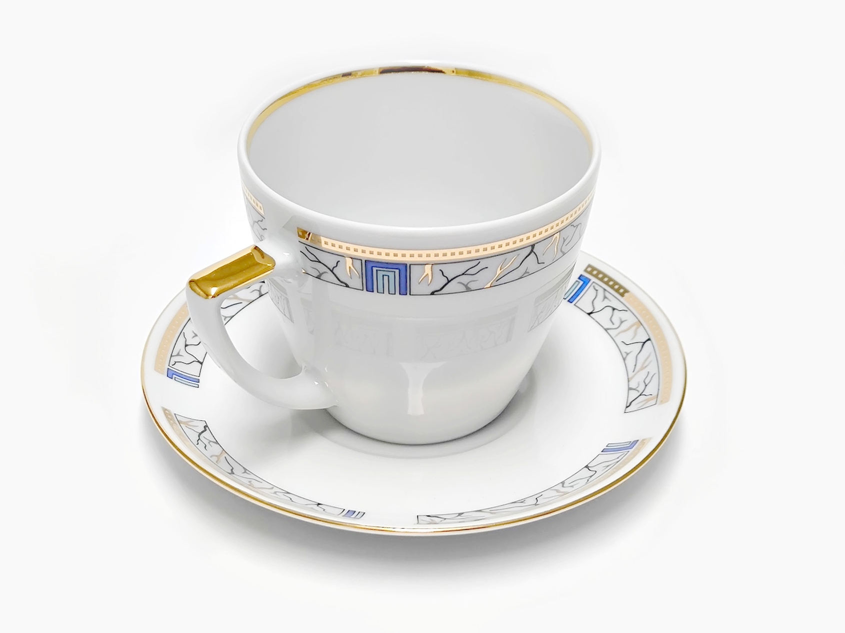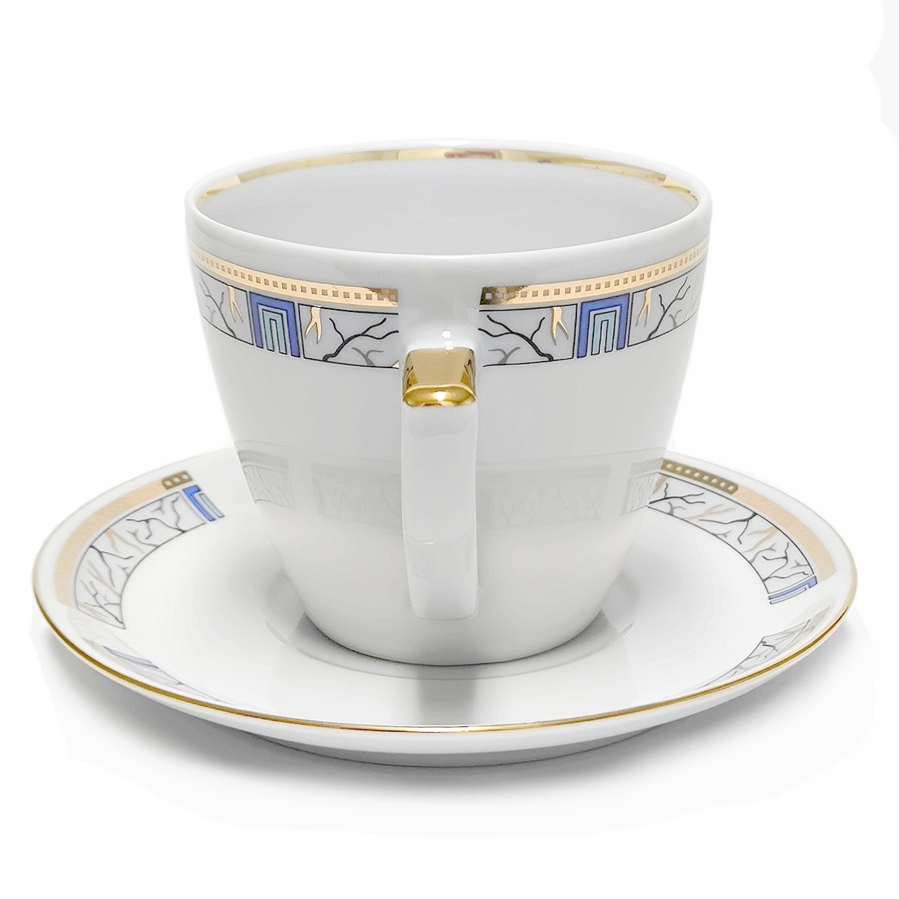 Dekoracja wykonana ręcznie z użyciem kalkomanii naszkliwnej oraz złota, serwis przeznaczony do mycia ręcznego.