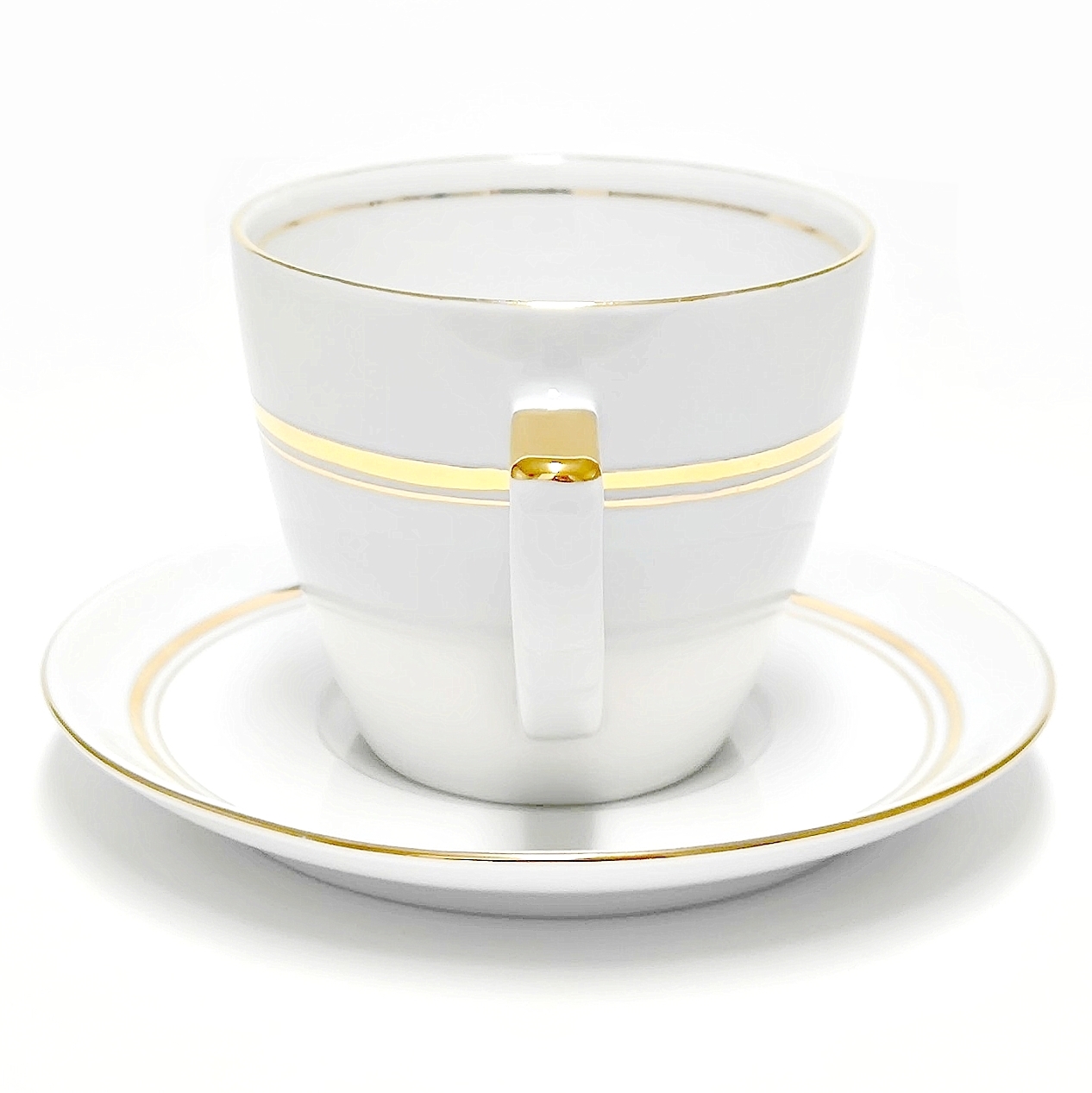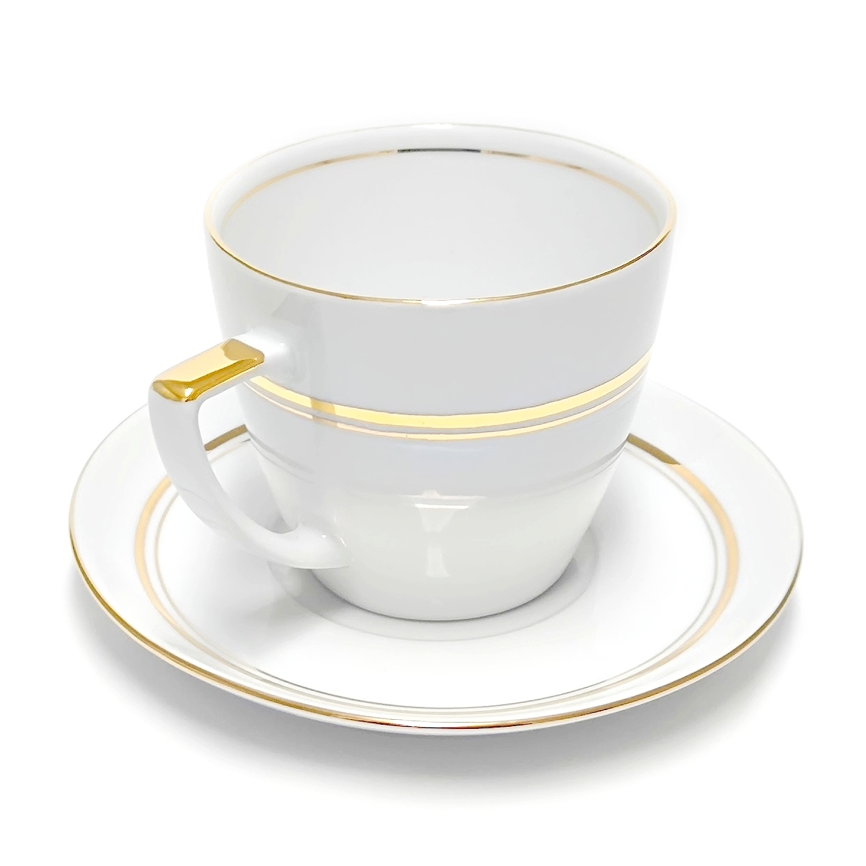 Dekoracja wykonana ręcznie z użyciem złota, serwis przeznaczony do mycia ręcznego.