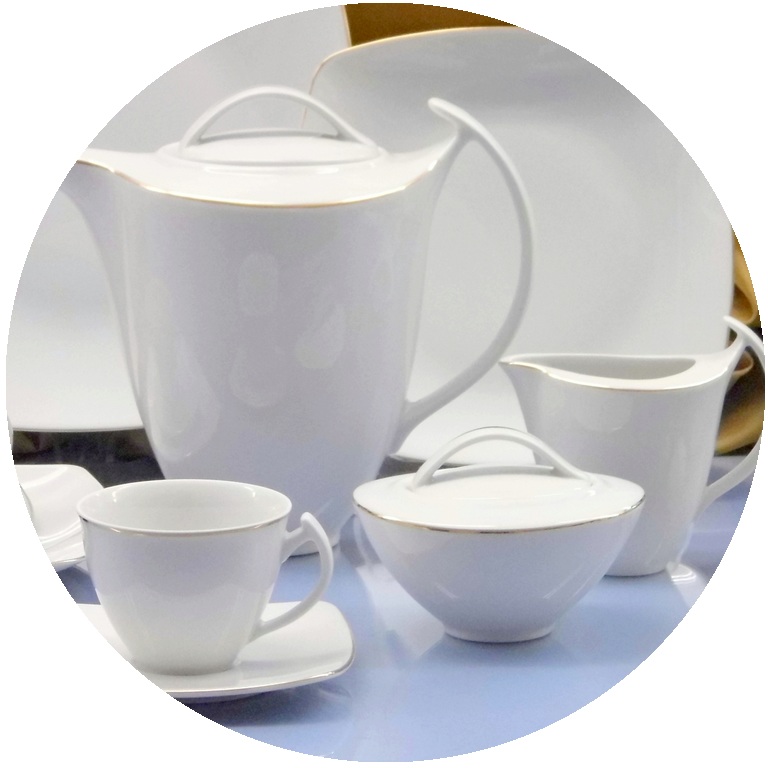 Dekoracja wykonana ręcznie z użyciem złota, serwis przeznaczony do mycia ręcznego.